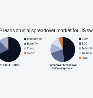 According to Clarus, in the crucial spreadover market ICAP maintained its position as the leading broker with 48% share while the balance of 51% is traded on the other 5 SEFs combined.